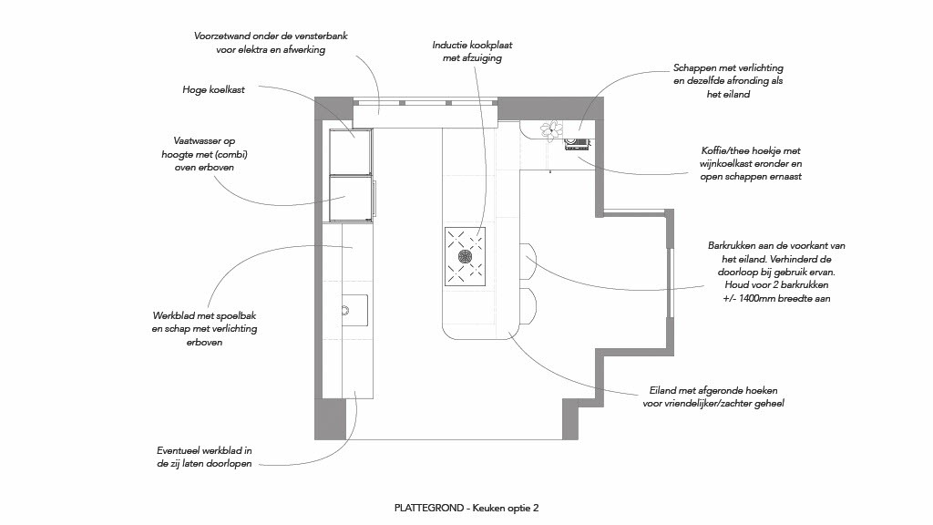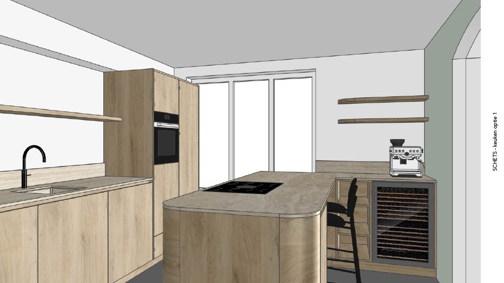 Je ontvangt het interieurontwerp in een overzichtelijke presentatie, ideaal om te gebruiken richting aannemer of andere betrokken partijen. Alles helder uitgewerkt, zodat je met vertrouwen keuzes kunt maken.